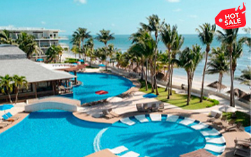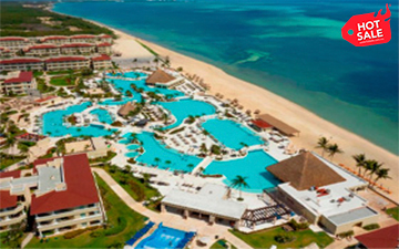 Hotel todo incluido frente al mar con campo de golf, parque acuático infantil y múltiples albercas.